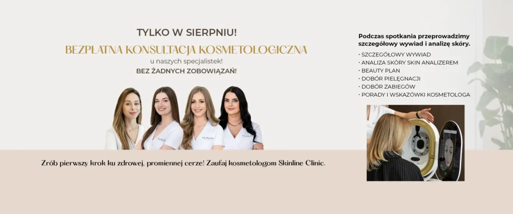 Konsultacja kosmetologiczna w klinice Skinline Clinic to profesjonalna usługa skierowana do osób borykających się z problemami skóry. Na podstawie informacji uzyskanych za pomocą wywiadu kosmetologicznego oraz diagnostyki skóry twarzy opracowujemy indywidualny plan terapeutyczny.